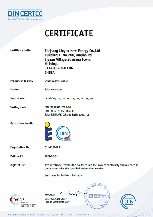 LINYAN 20 tubi Solar Keymark collettore solare pressurizzato certificato collettore solare tubo a vuoto tubo di calore collettore solare